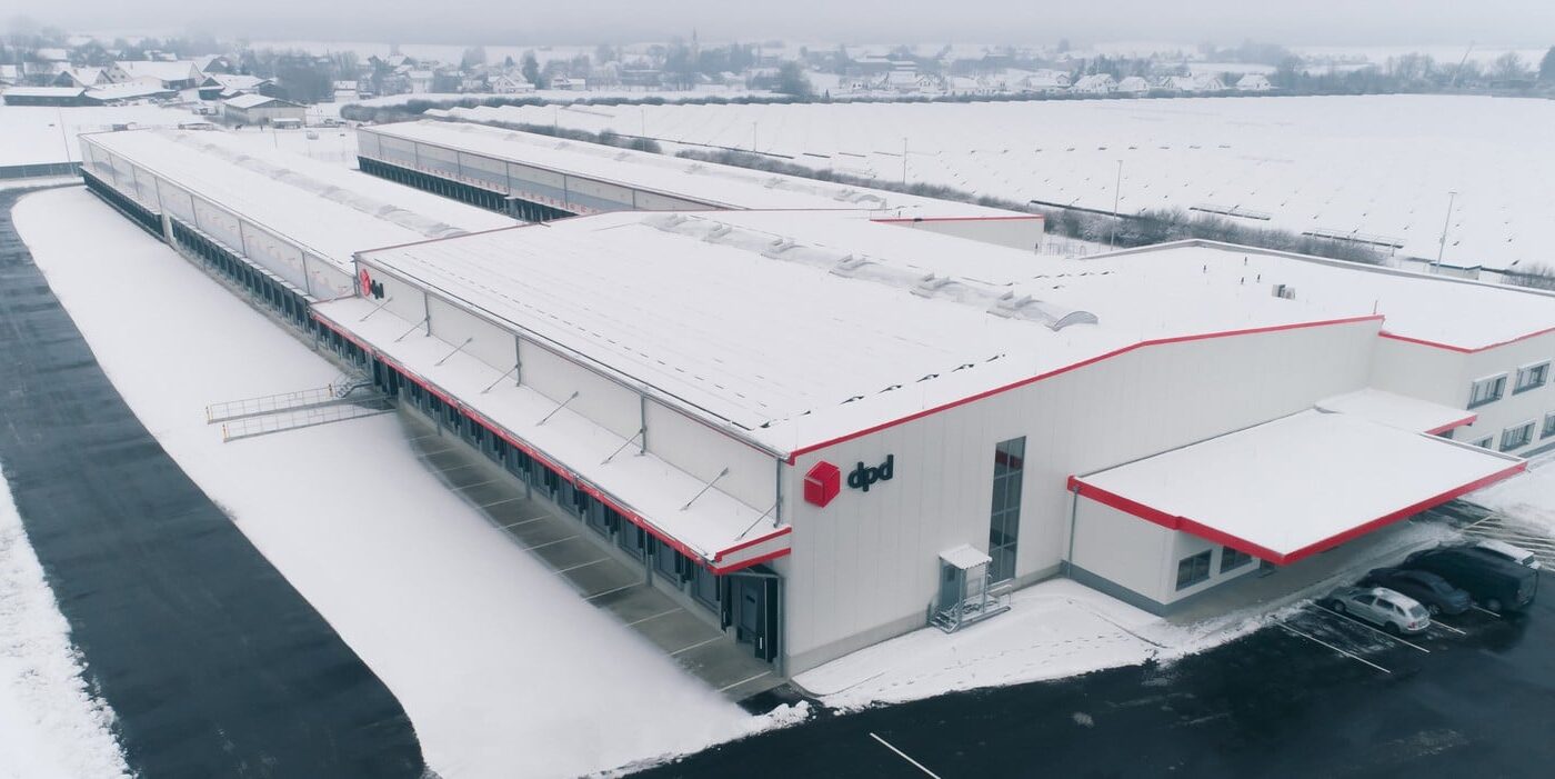 Foto: © DPD / Bildlegende: Ressourcenschonende Bauweise, Photovoltaikanlage, regenerative Wärme aus Biomasse: In Holzgünz hat DPD Deutschland ein besonders nachhaltiges Paketsortierzentrum in Betrieb genommen.