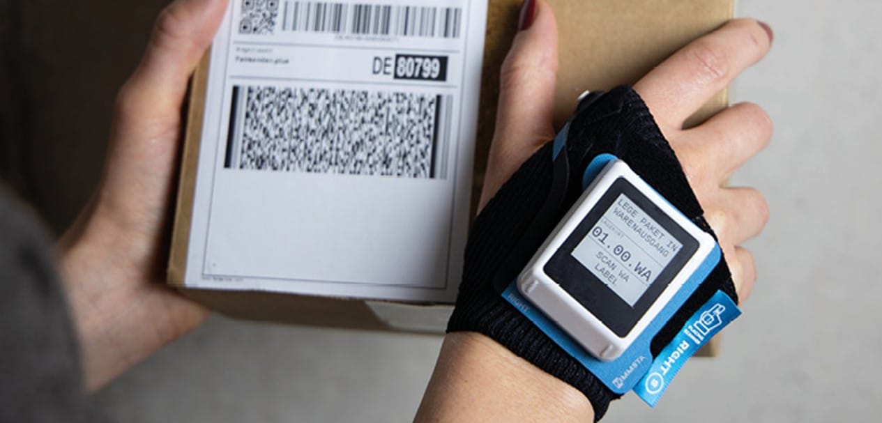 Mit NIMMSTA werden alle Prozesse zu Freehand Scanning Workflows. Pistolenscanner müssen immer wieder abgelegt werden, Daten überprüfen, die Ware transportieren und schließlich muss der Scanner wieder aufgenommen werden. Der HS 50 bleibt immer auf dem Handrücken, die Hände sind stets frei und mit nur 45g ist er kaum zu spüren. Die Prozesse sind dadurch viel schneller abgearbeitet und zudem kommuniziert der Scanner jeden Fehler, dadurch reduziert sich die Fehlerquote enorm.