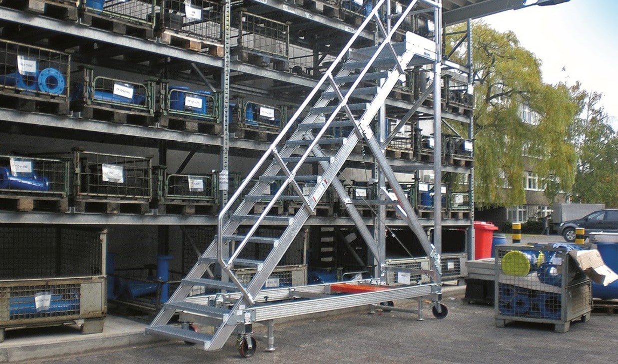 Foto: © KRAUSE / Bildlegende: Fahrbare KRAUSE-Plattformtreppe