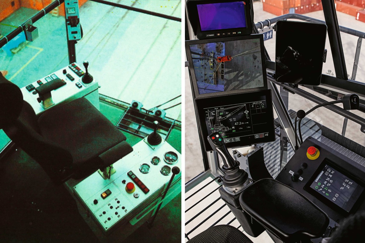kommunizieren und die Bewegungen synchronisieren können. Der führende Kran gibt dem zweiten Kran Informationen zu Schwenkwinkel, Hubhöhe und Lastgewicht, die dieser dann automatisch anpasst. Mit fortschrittlichen Algorithmen und Sicherheitssystemen ermöglicht Sycratronic die volle Ausnutzung der Tragfähigkeit der Krane und überwindet die typische Beschränkung von 75 % bei Tandemhüben. Außerdem erhöht es die Sicherheit, indem es Verschiebungen des Lastschwerpunkts überwacht und korrigiert und Kommunikationsfehler zwischen den Kranführern ausschließt, wodurch das Unfallrisiko verringert wird.
