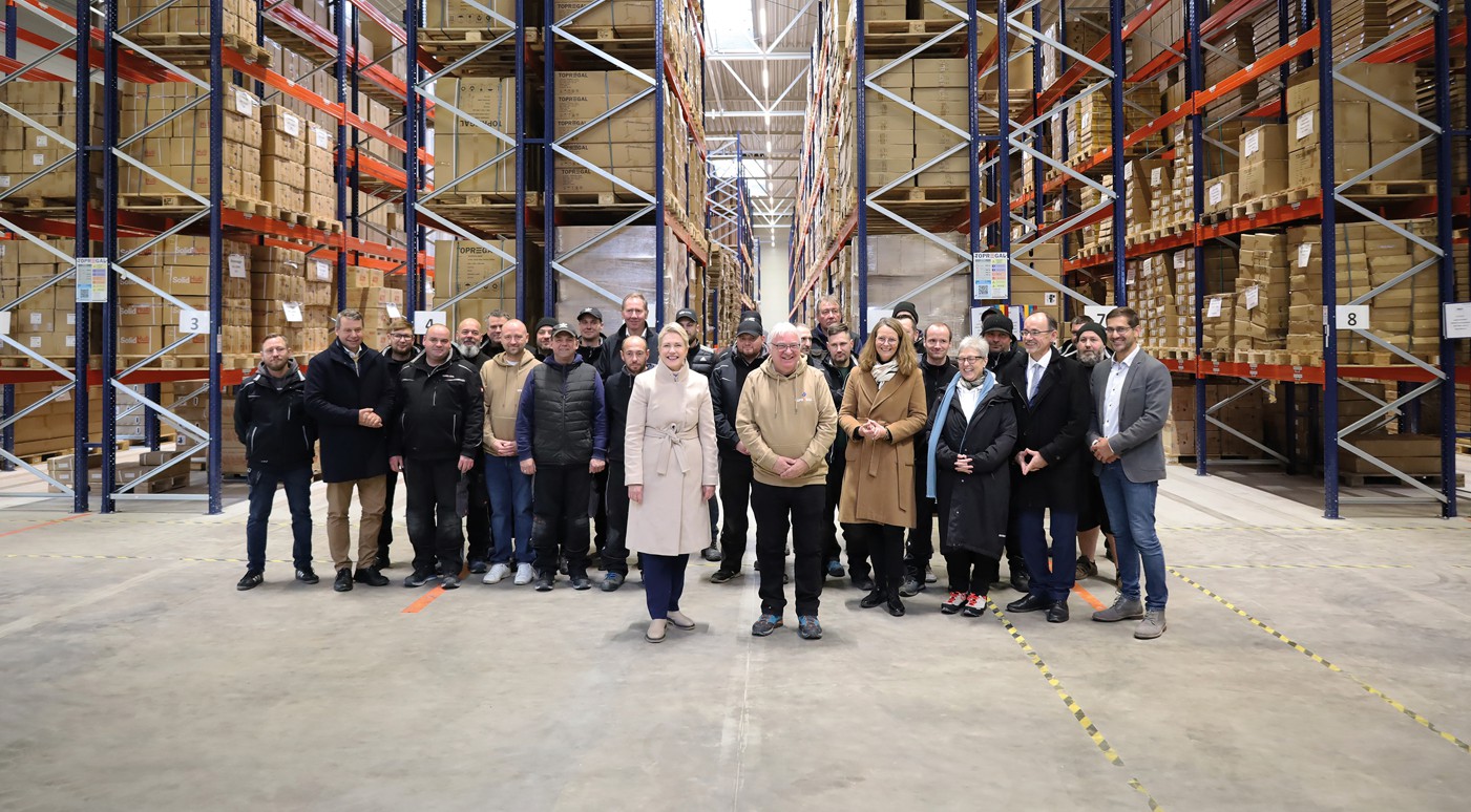 Foto: © Topregal / Bildlegende: Zum Richtfest der neuen Logistikimmobilie von Topregal kam sogar Manuela Schwesig (vor ne links), die Ministerpräsidentin Mecklenburg-Vorpommerns