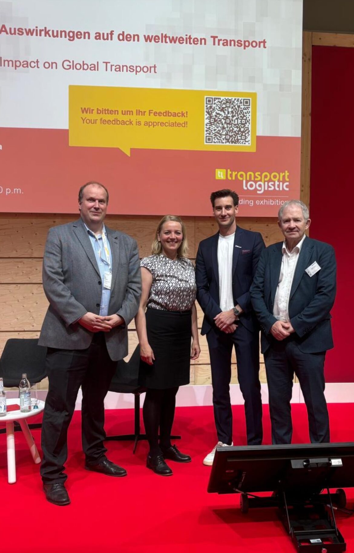 Foto: © Loginfo24 / Bildlegende (v.l.n.r.): Dr. Max Siebert (Replique), Dr. Katrin Oettmeier (Ostschweizer Fachhochschule), Dr. Fabian Frommer (Seifert Logistics) und Andreas Müller (Logismedia)