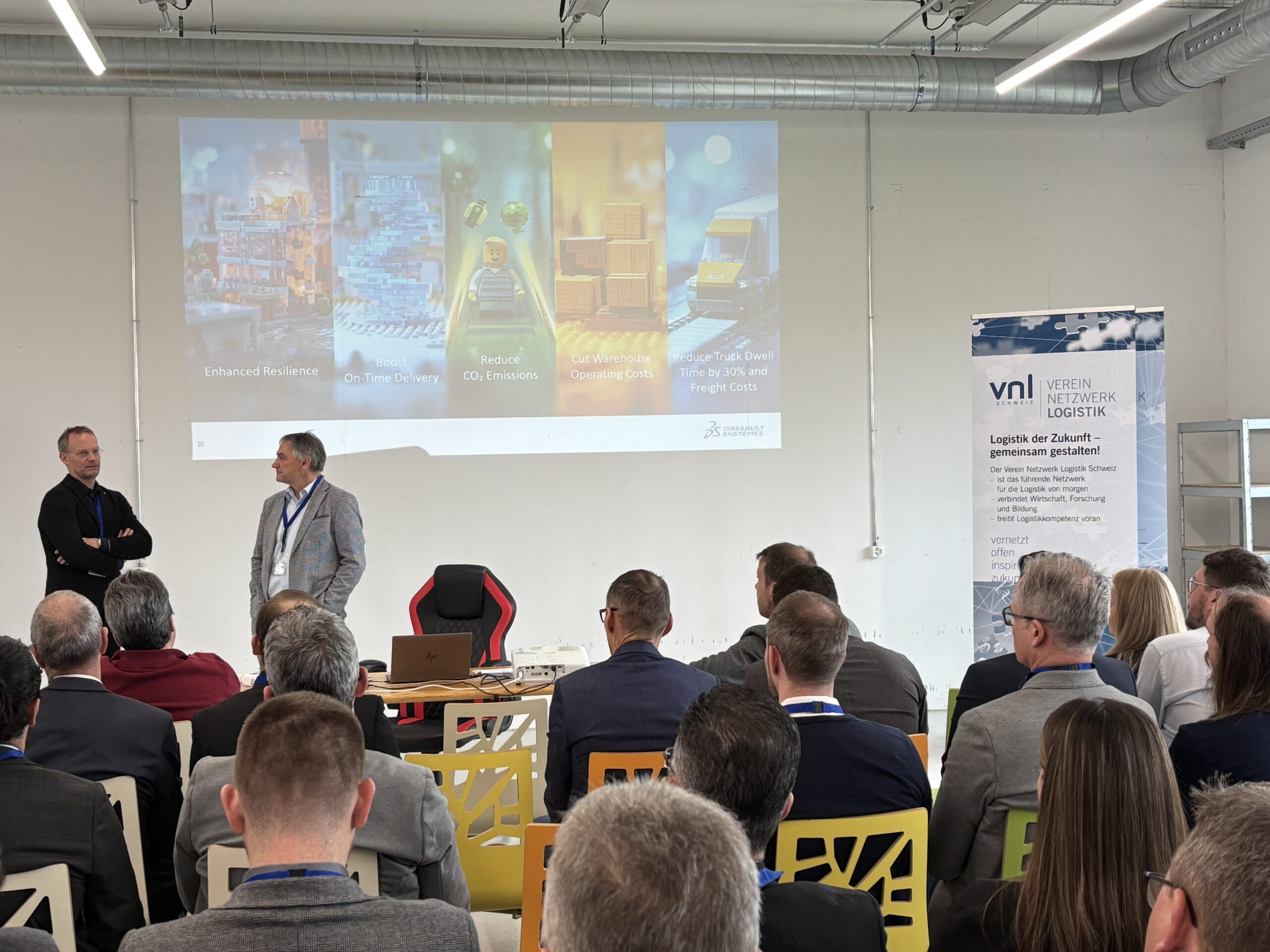 In der zweiten Keynote zeigte Roland Michaely (Dassault Systèmes), wie digitale Zwillinge in Transportnetzwerken, Lagern oder Produktionsumgebungen zu schnelleren Entscheidungen und sichereren Abläufen führen. Fragmentierte IT-Landschaften und Datensilos seien nach wie vor die grössten Hindernisse. Digitale Zwillinge schaffen hingegen eine „virtuelle Sandbox“, in der Unternehmen Szenarien simulieren, Risiken abfedern und CO₂-optimierte Netzwerke planen können.