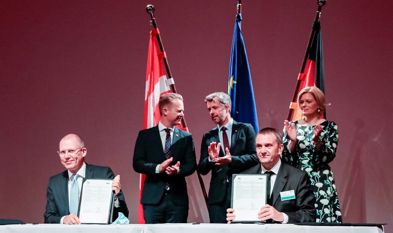 Jens Bjørn Andersen, CEO of DSV A/S, and Christian Bodi, dm’s logistics managing director, sign the joint declaration of intent in the presence of Danish Foreign Minister Jeppe Kofod, Crown Prince Frederik of Denmark, and Federal Minister for Food and Agriculture Julia Klöckner on November 11. “We have been successfully working together for many years and want to make a significant contribution to a responsible and sustainable supply chain with this agreement,” explains Peter Fog-Petersen, Managing Director of DSV Road GmbH. DSV, as one of the world’s largest transport and logistics companies, and dm-drogerie markt, as one of the largest German retail chains, intend to jointly reduce the climate-damaging impacts and the resulting effects on people and nature from the transport and storage of goods as much as possible. “Cross-border, we have already implemented many innovative projects with our Danish partner. Now we are intensifying our collaboration with the goal of significantly reducing greenhouse gas emissions and energy consumption.