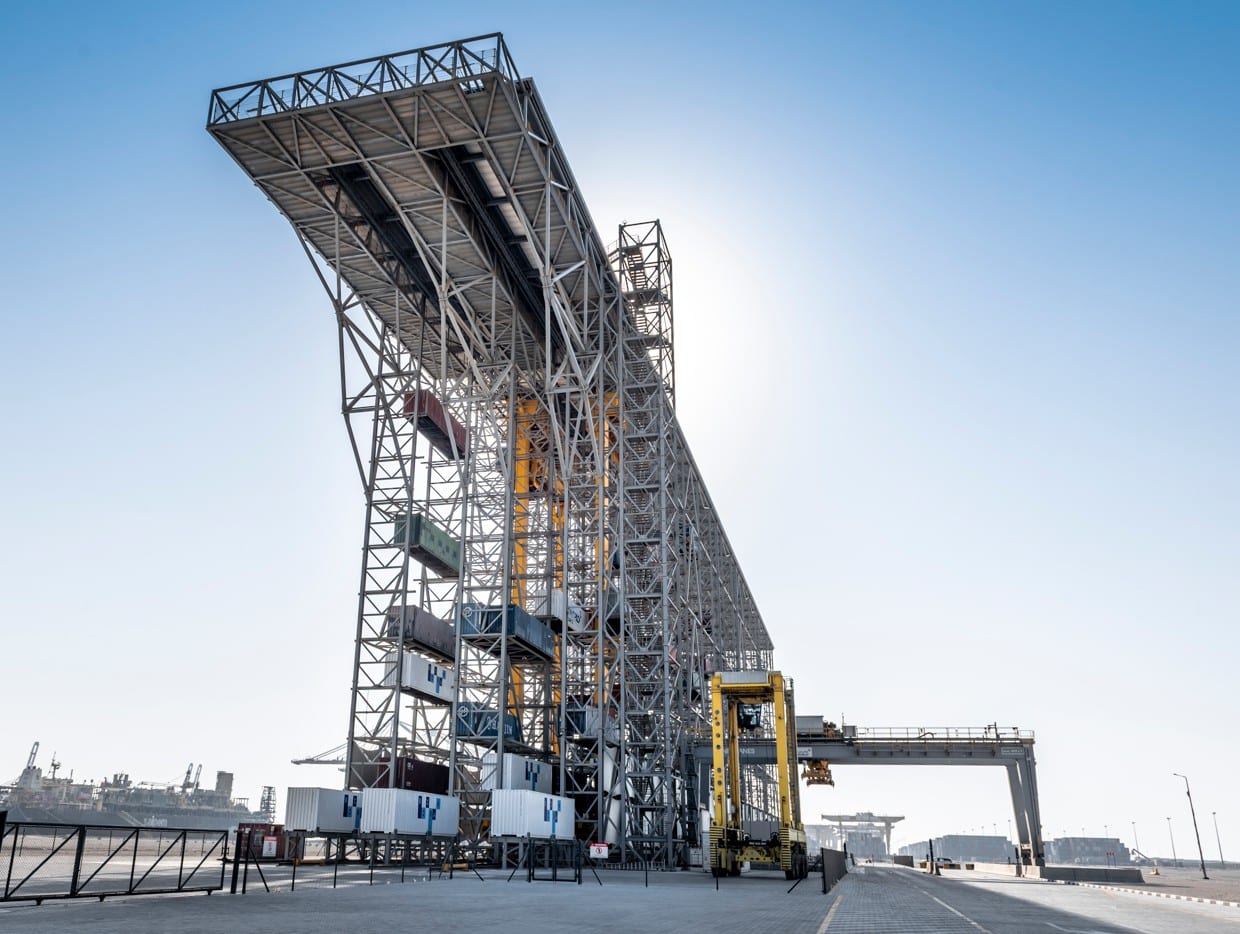 In January 2021, as a proof of concept, the partner SMS Group and DP World commissioned the first facility in the port of Dubai. With a complete expansion of the 230-meter-long, 26-meter-wide, and 50-meter-high pilot facility, 500 inbound and outbound movements per hour can be realized on the water side and 300 inbound and outbound movements per hour on the land side. The quay-side handling technology with the existing container bridges can continue to be used as before. The boxes are then taken over by the transport systems deployed in the terminal and transported to the receiving position of the Boxbay warehouse. There, powerful stacker cranes take over the containers and transport them through aisles to the storage locations of Boxbay. Below the warehouse, there is a surrounding rail-bound pallet transport system that brings the containers to the land-side truck or rail transfer station or picks them up.