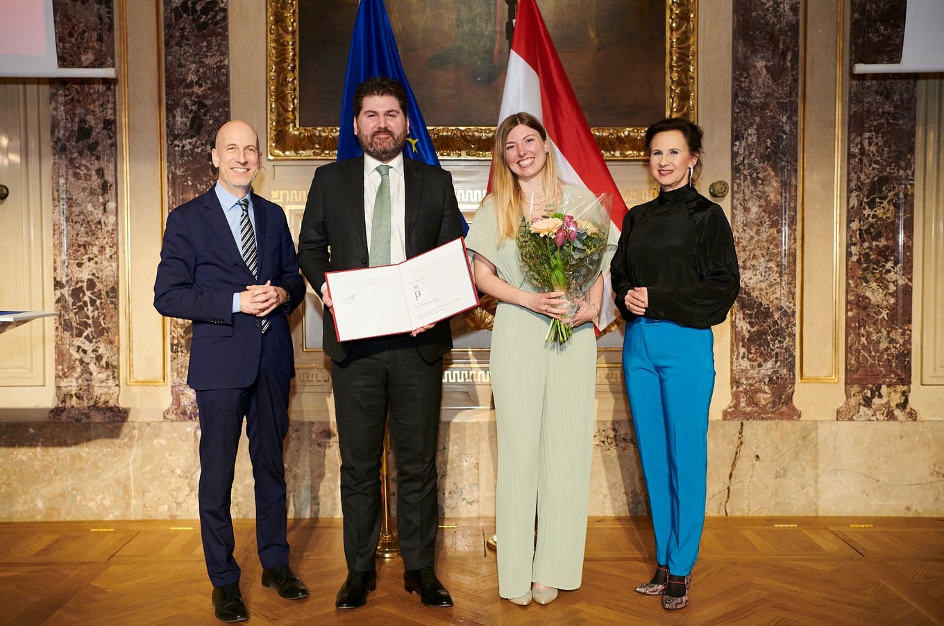 The prestigious award was presented on Wednesday evening, February 22, in Vienna by Minister of Economic Affairs Martin Kocher. Frank Haas and Vanessa Hafner from Gebrüder Weiss accepted the award: “As the most experienced logistics company in the world, Gebrüder Weiss is committed to the future of mobility. We want to help science find new ways. We achieve this not only through logistics but also through communication,” said Frank Haas, who is responsible for international communication and marketing at the logistics company.