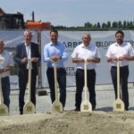 Photo: © WP Holding / Caption: Saxony’s Prime Minister Michael Kretschmer (2nd from left) in front of the new battery recycling plant with the management of WP Holding (from left to right): Heiko Nowak, Doreen Paesold-Runge, and the Managing Director of ERLOS Production and Assemblies, Dr. Matthias Schmidt