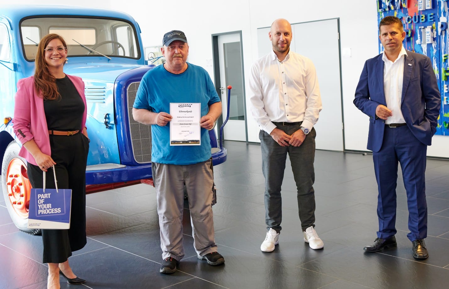 28.06.2021 um 17:45 UhrIm Laufe seiner langjährigen Tätigkeit für pfenning logistics gibt es kaum eine Ladung, die Erwin Heß nicht gefahren wäre. Als Lkw-Fahrer hat er das Unternehmen auf seinem Weg von der Spedition zum Full-Service-Kontraktlogistikdienstleister begleitet und leistet mit seiner Erfahrung einen wertvollen Beitrag. Im Rahmen einer Feier bedankte sich das Unternehmen bei ihm und blickte auf seine verdienstvolle Laufbahn zurück.