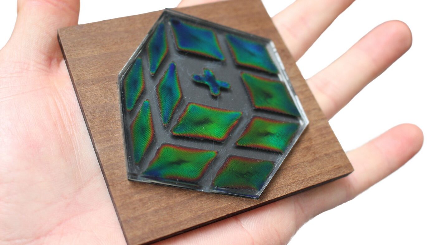 El color estructural de la HPC no solo cambia con la concentración, sino también con la temperatura. Para poder aprovechar mejor esta propiedad, los investigadores liderados por Gustav Nyström añadieron al mezcla de HPC y agua un 0.1 por ciento en masa de nanotubos de carbono. Esto hace que el líquido sea eléctricamente conductivo y permite a los investigadores controlar la temperatura, y por lo tanto el color de los cristales líquidos, aplicando una tensión eléctrica. Bonificación: el carbono actúa como un absorbente de banda ancha, intensificando los colores. Con un aditivo adicional, una pequeña cantidad de nanofibras de celulosa, el equipo de Nyström también logró hacer que la mezcla fuera imprimible en 3D, sin afectar la coloración y la conductividad.