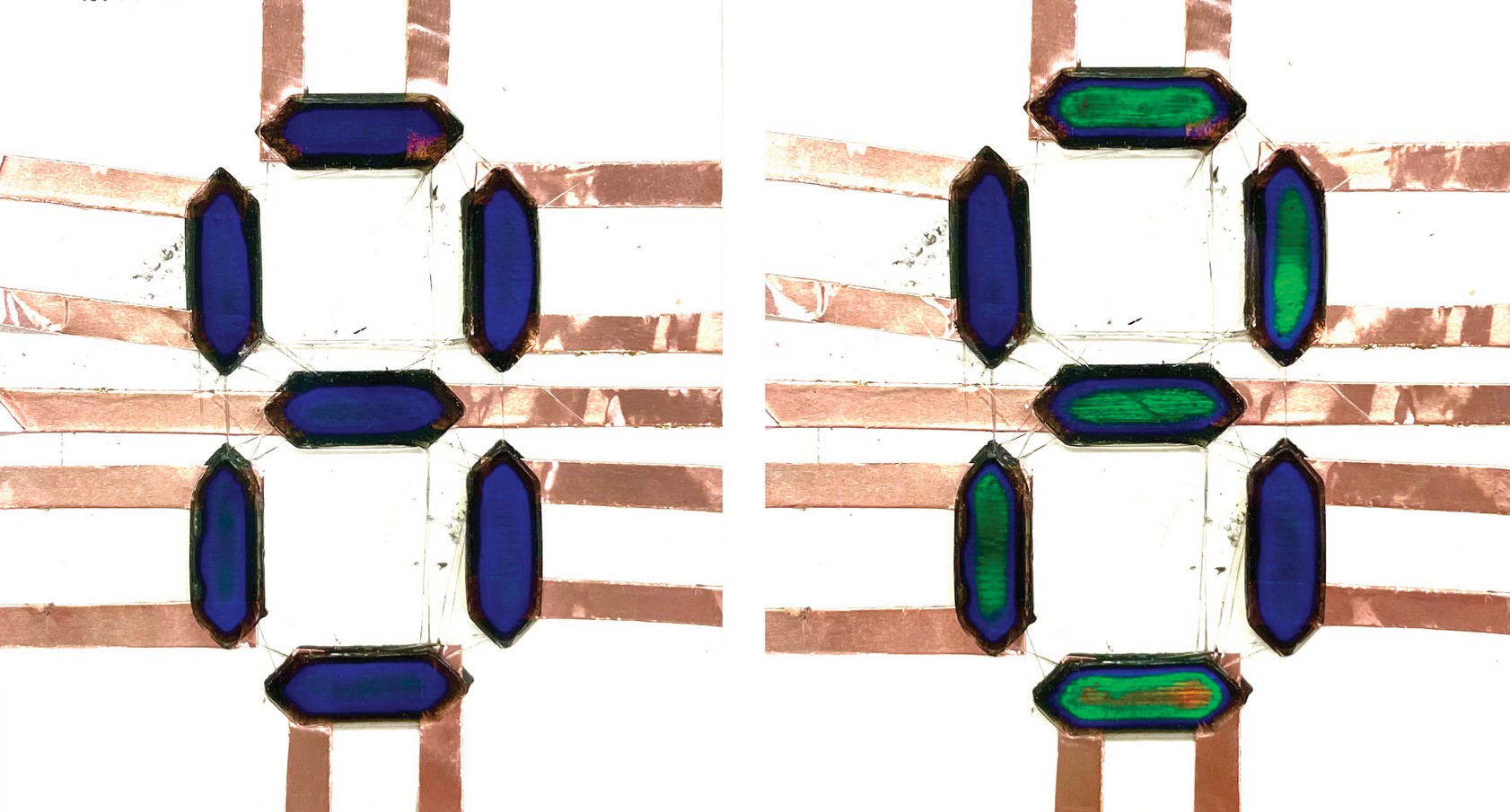 Biodegradable: La pantalla consta de 7 segmentos conductores que cambian de color mediante el calor eléctrico