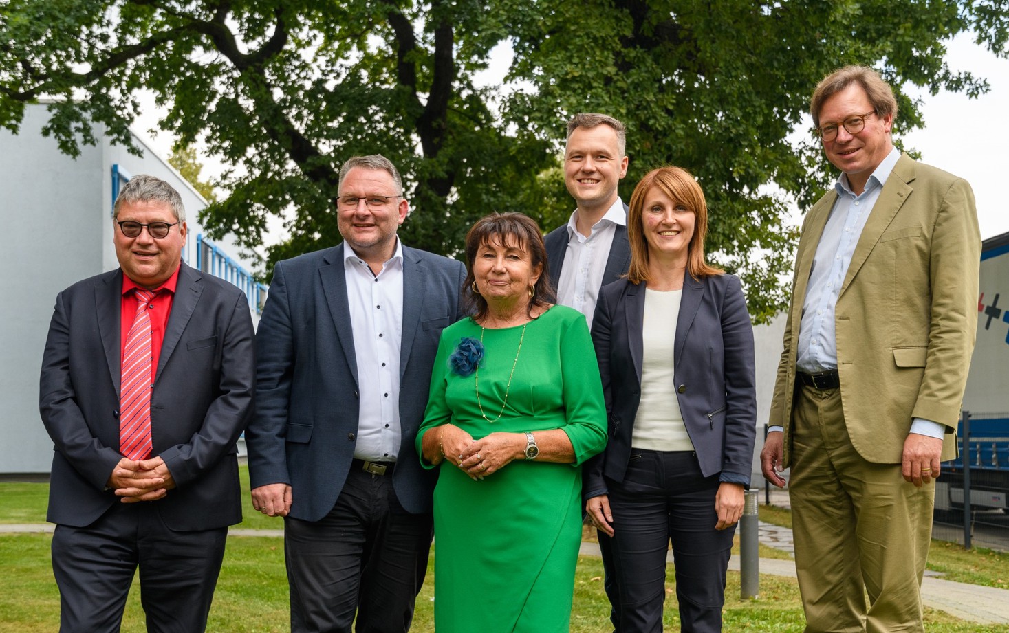 Foto: © WP Holding / Pie de foto: La cúpula de la fracción de la CDU del parlamento sajón visita WP (de izquierda a derecha: Dr. Matthias Schmidt, director general de Erlos, Christian Hartmann, presidente de la fracción CDU Sajonia, Kerstin Nicolaus, MdL, Jan Löffler, MdL, Doreen Paesold-Runge, directora general de WP Holding, Georg-Ludwig von Breitenbuch, MdL)