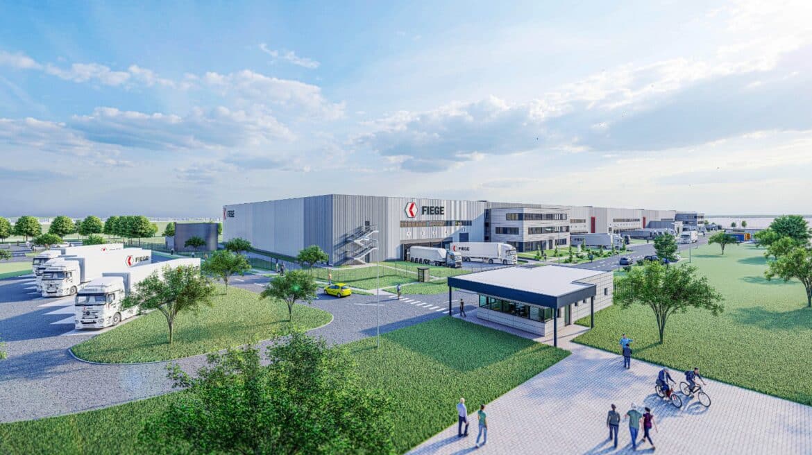 Zülpich, 03.08.2020. Die Firma Fiege errichtet ein neues Logistikzentrum im nordrhein-westfälischen Zülpich. Zentral im Städtedreieck Köln-Bonn-Aachen gelegen entsteht ein Multi-User-Center mit 54.000 Quadratmetern Logistikfläche, bestehend aus Hallenfläche, Büro- und Sozialräumen. Am 3. August 2020 hat Fiege in Anwesenheit von NRW-Verkehrsminister Hendrik Wüst, Landrat Günter Rosenke, Bürgermeister Ulf Hürtgen und weiteren Vertretern der Stadt Zülpich, des Investors LIP Invest, des Architekturbüros Jürgen Schlake und des Generalunternehmers Goldbeck International den Baubeginn gefeiert. Die Logistikimmobilie soll bereits im Sommer 2021 fertiggestellt sein. Fiege wird die Anlage für verschiedene Kunden selbst betreiben. Die Investitionssumme für das Neubauprojekt beträgt rund 50 Millionen Euro.