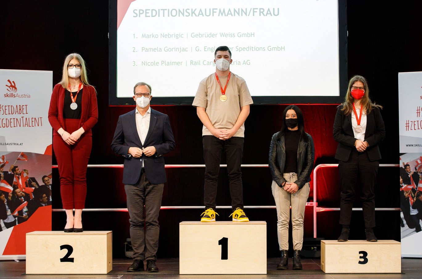 25/01/2022 à 18 h 51Marko Nebrigic, diplômé chez Gebrüder Weiss, a remporté les championnats d’Autriche des métiers « AustrianSkills 2021 » dans la catégorie de gestionnaire en expédition. Du 20 au 23 janvier 2022, Nebrigic s’est imposé au centre des foires de Salzbourg contre deux autres collègues du secteur du transport et de la logistique en Autriche.