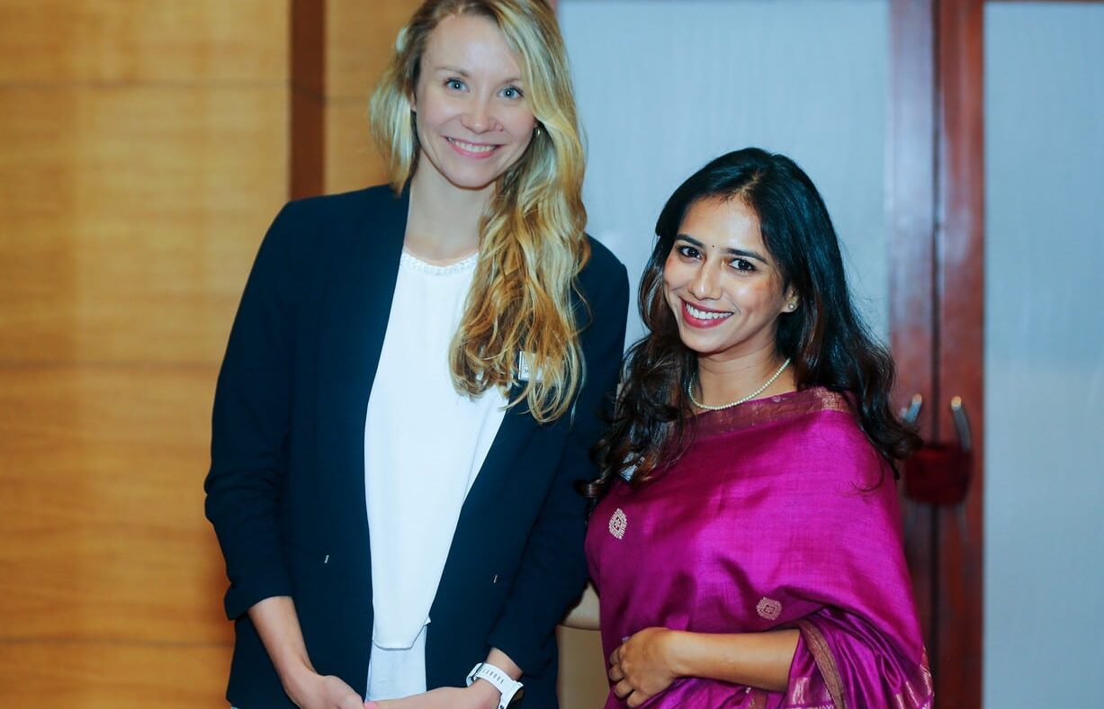 Photo : © HHM / Légende de l’image : Sameeha Pradeep Sule (à droite) remplace Lea Miram (à gauche) à la représentation du port de Hambourg à Mumbai