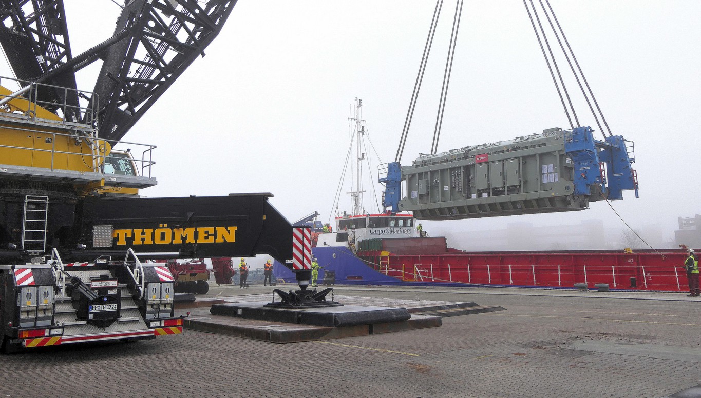 La grue mobile a été mise en action deux fois pour amener les deux transformateurs en toute sécurité à terre. « C’était une opération fantastique avec notre grande grue. Tous les participants ont excellé dans leur collaboration, chaque rouage a parfaitement fonctionné », juge Marc Bernschneider, chef de projet chez Thömen Hambourg. La première partie de la mission est donc accomplie, maintenant suit la deuxième partie : le transport de fret lourd par la route, et celui-ci est également complexe. Le lundi 20 janvier et le mercredi 22 janvier, un transport lourd de 87 mètres de long est prévu à partir de 22 heures. Il passera par la Posener Straße et la Schwartauer Allee jusqu’à Stockelsdorf. Là, les colis seront nécessaires à la sous-station Tennet pour la ligne côtière est. Ce projet est un projet clé de la transition énergétique et de la stabilité du réseau. Il transporte de l’électricité verte d’Ostholstein vers le sud et relie l’Allemagne au réseau électrique européen via le « Baltic Cable ».