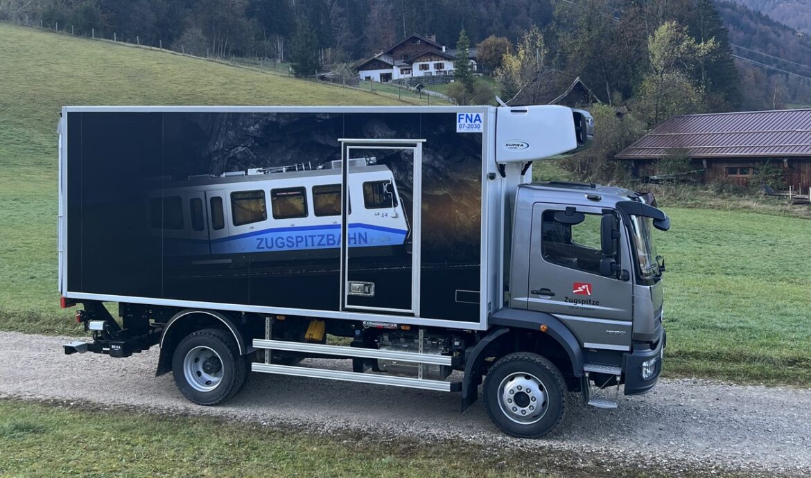 Ende Oktober wurde ein besonderes Fahrzeug ausgeliefert, das in einem nicht alltäglichen Bereich zum Einsatz kommt! Ein Mercedes -Benz Atego 4×4 Allrad wurde an die Bayerische Zugspitzbahn ausgeliefert. Das Fahrzeug ist speziell für anspruchsvolle Einsätze im Gebirge ausgelegt. Ausgestattet mit einem Kiesling-Kühlaufbau, ermöglicht es den sicheren Transport von temperaturempfindlichen Waren.