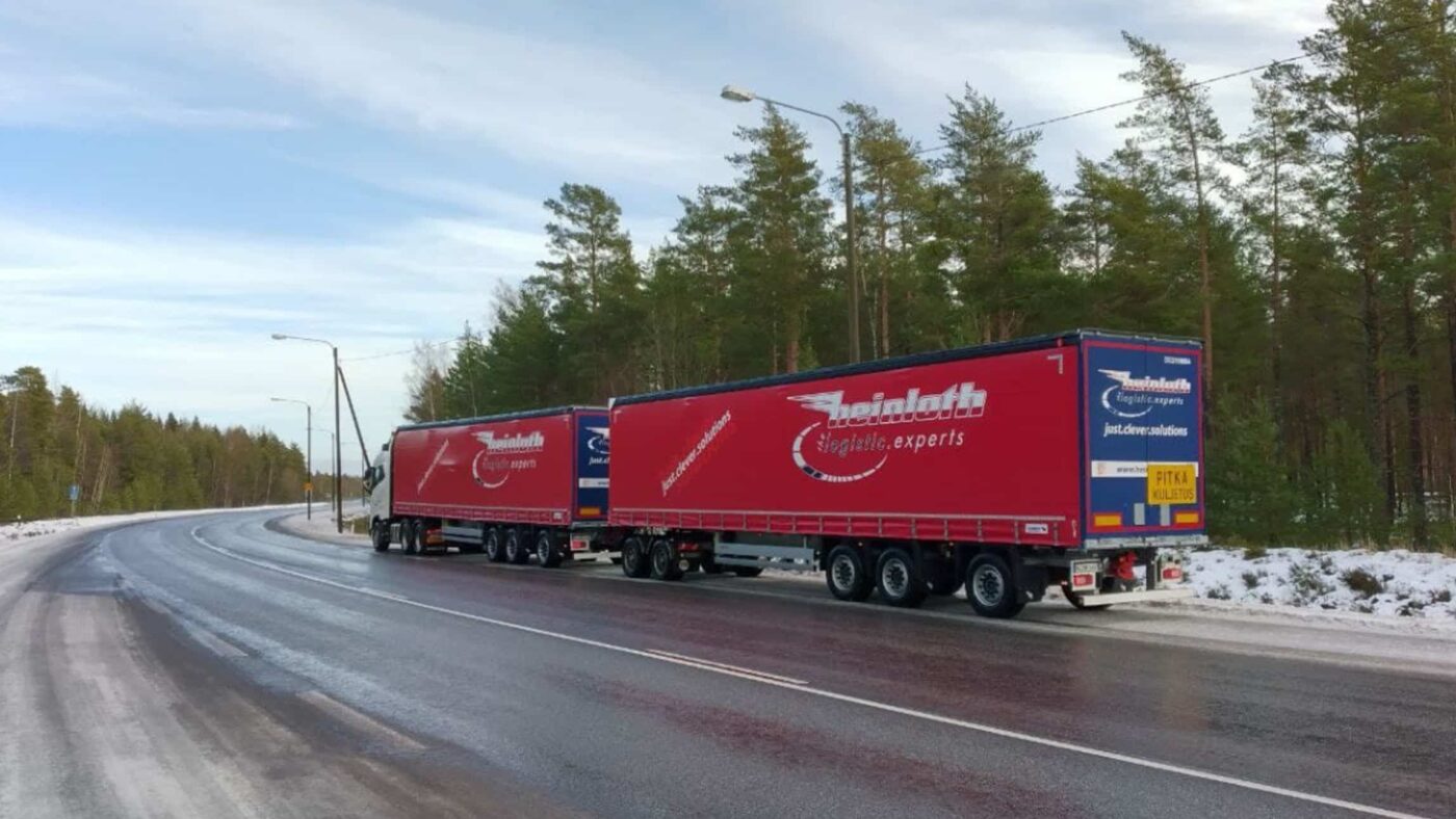 Attualmente, l’azienda di Roth è attiva sulle strade finlandesi. In Germania, solo i cosiddetti EuroCombi (lungo camion) sono autorizzati su determinate tratte, che con un massimo di 25,25 metri non raggiungono le capacità degli HCT. Inizialmente, il focus dei trasporti in Scandinavia era principalmente sulla Svezia e sulla Norvegia, ma il traffico verso la Finlandia è stato costantemente ampliato dall’inizio del 2019. La Finlandia è quindi diventata un’altra grande e importante area di vendita per HEINLOTH. Attualmente, Heinloth gestisce quasi 400 unità di veicoli nel traffico scandinavo. Un fattore decisivo per gli ECO-Trailer è il cosiddetto Dolly Aggregat, che funge da unità di collegamento tra due rimorchi e sostituisce praticamente un trattore. Gli ECO-Trailer aiutano quindi a gestire il crescente volume di trasporto e a rendere il trasporto più sostenibile.