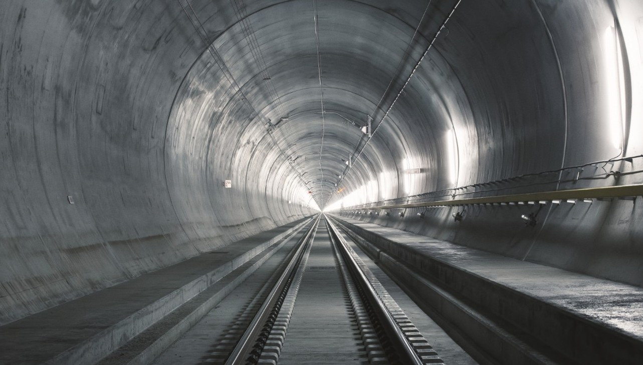 Ecco come appare attualmente il tunnel ferroviario del Gotthard. Il 23.8.23 dovrebbe essere aperto un tubo per il traffico merci.