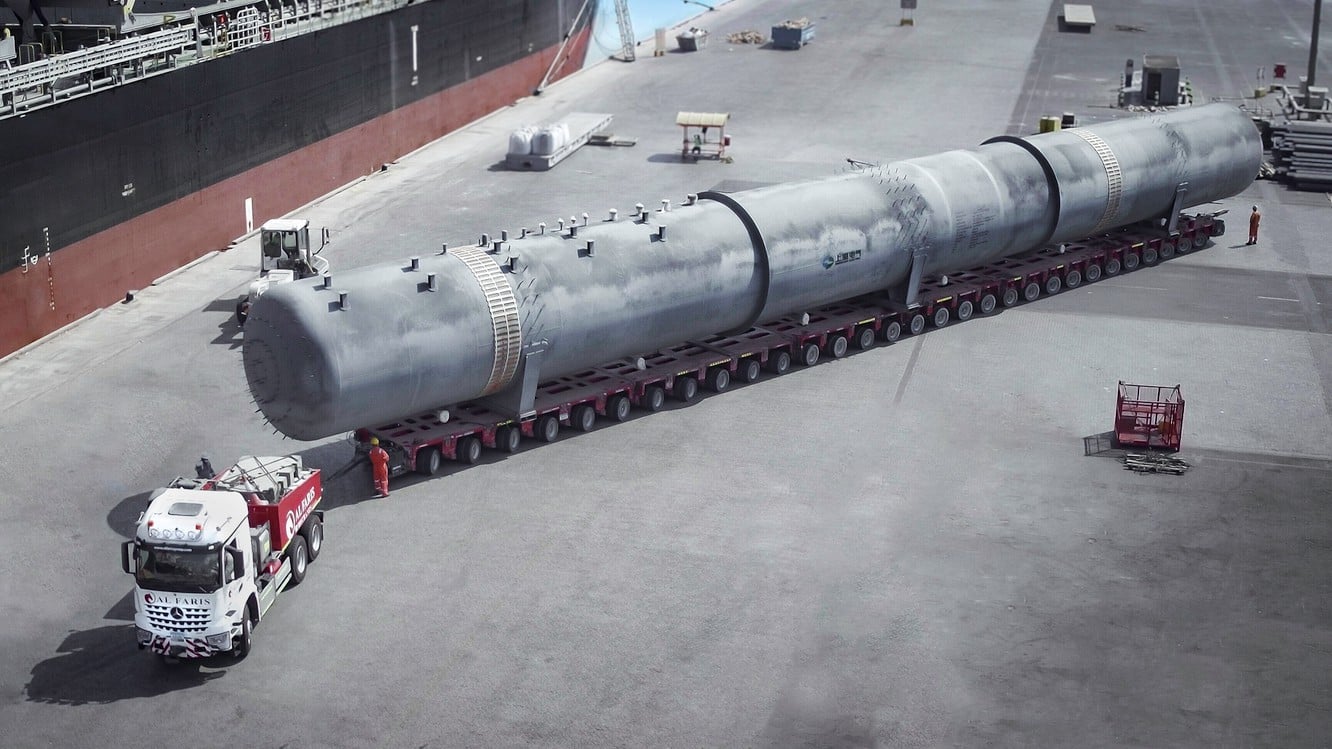 04-08-2021 om 16:25Voor het vervoer en de opbouw van 30 tanks voor het grootste zonnepark ter wereld in Dubai is het ervaren logistieke en zware transportbedrijf AL Faris ingeschakeld. Voor het transport van de Jebel Ali Port (VAE) naar het Mohammed-Bin-Rashid-Al-Maktoum-zonnepark vertrouwt het bedrijf opnieuw op zijn beproefde Goldhofer-zware ladingmodules.