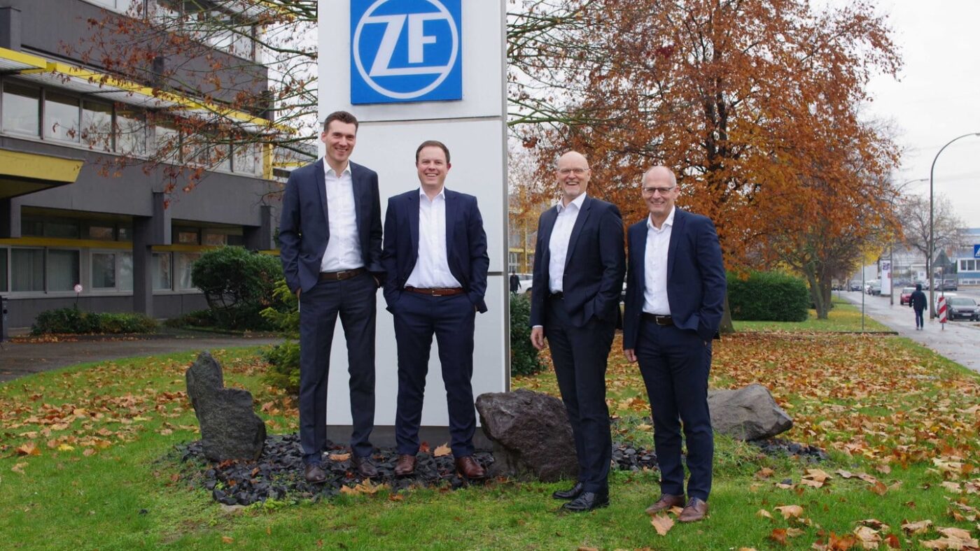 Foto: © ELSEN / Bijschrift (v.l.n.r.): Thomas Welter (Regionaal Operations Director ELSEN Logistik GmbH), Markus Jansen (Hoofd Logistiek ZF), Andreas Brune (Directeur van ZF Active Safety GmbH) en Peter Dennert (Directeur van ELSEN Logistik GmbH)