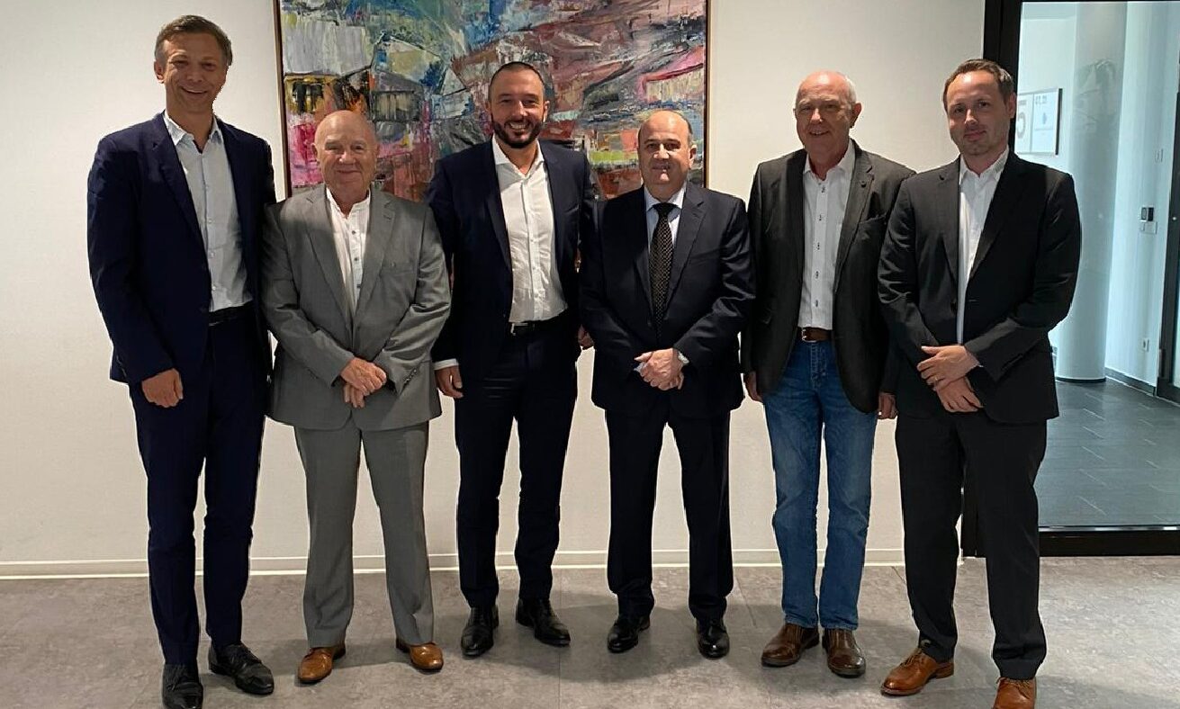 Foto: © Rhenus / Bijschrift: Bij de ondertekening van het contract (van links naar rechts) Thilo Streck, directeur/CEO Rhenus Road Europe; Walter Bayer, oprichter/Founder MTG Bayer GmbH; Nenad Lukic, directeur/Managing Director Rhenus Road Duitsland; Uwe Bayer, directeur/Managing Director MTG Bayer GmbH; Gerhard Bayer, oprichter/Founder MTG Mayer GmbH; Jens Bayer, directeur/Managing Director MTG Bayer GmbH