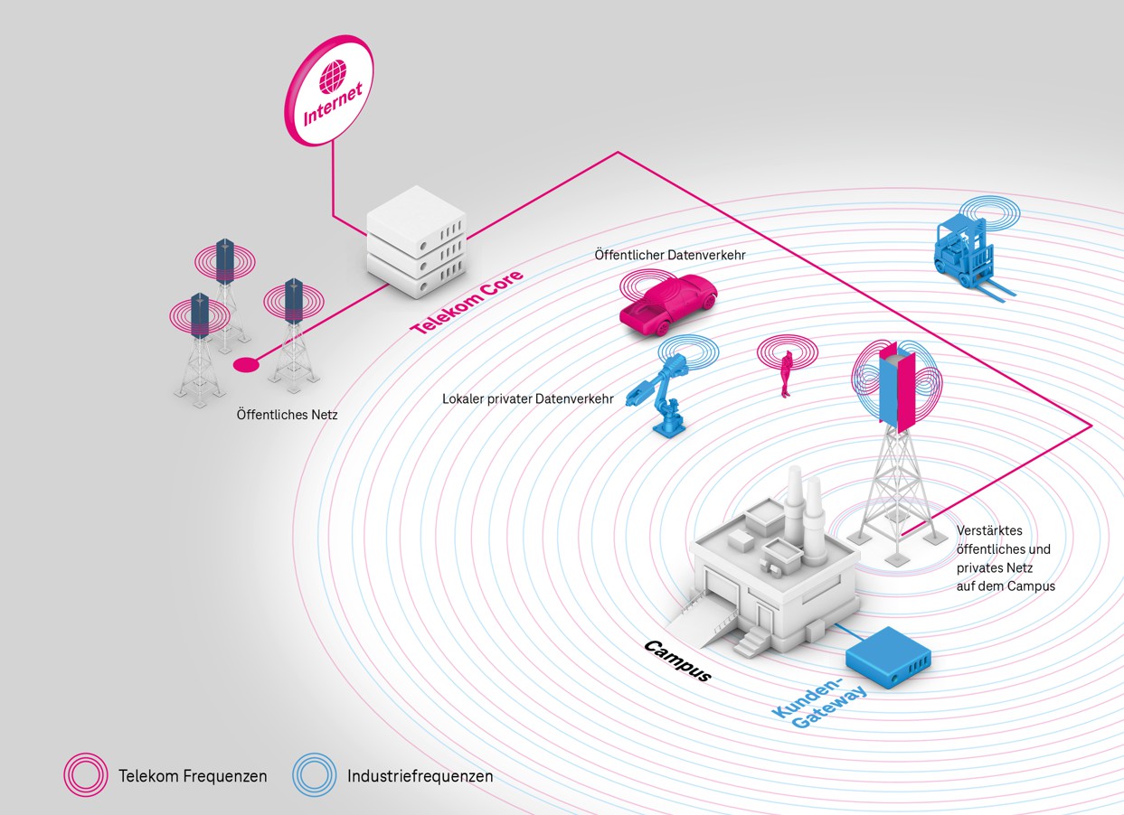 De campusnetwerken van Telekom zullen in totaal een oppervlakte van 5,6 miljoen vierkante meter op de drie containerterminals van de nieuwste mobiele standaard voorzien. Dit komt overeen met een grootte van ongeveer 785 voetbalvelden. Aan de ene kant worden bestaande mobiele installaties ter plaatse uitgebreid. Aan de andere kant installeert Telekom op de terminalterreinen in Bremerhaven (2,9 miljoen m²) en Hamburg (1,4 miljoen m²) elk drie en in Wilhelmshaven (1,3 miljoen m²) twee extra 5G-zendlocaties. Het bijzondere is: er worden geen nieuwe masten gebouwd, maar bestaande lichtmasten worden gebruikt als dragers voor de krachtige 5G-antennes. De opbouw van de drie 5G-campusnetwerken zal tegen het voorjaar van 2024 zijn voltooid.