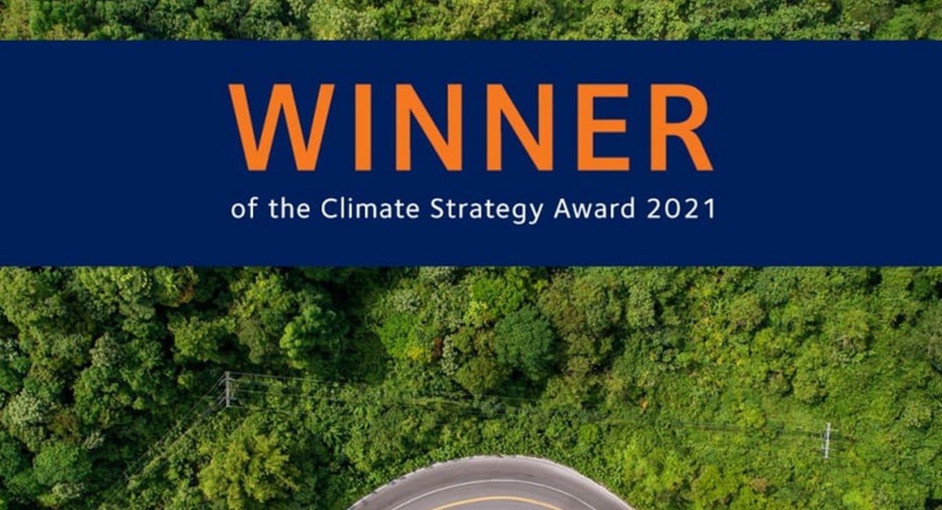 O prêmio de estratégia climática é um dos três prêmios concedidos naquele dia e vai para uma empresa cuja “estratégia inclui objetivos e ações particularmente ambiciosos para reduzir as emissões de gases de efeito estufa da empresa ou que, por meio de seu modelo de negócios, contribui de forma significativa para a redução das emissões de gases de efeito estufa da sociedade”.