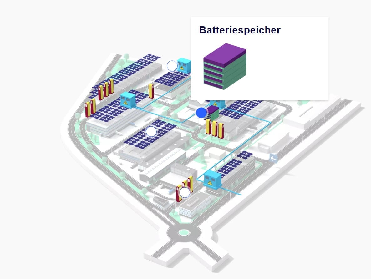 O plano interativo da área permite uma análise aprofundada do inovador conceito energético na área. O status final da expansão deve ser alcançado em 2025. Mais informações sobre o grau de autonomia, dimensionamento e tamanho das instalações de geração de energia e quantidades de produção serão fornecidas em um próximo passo.