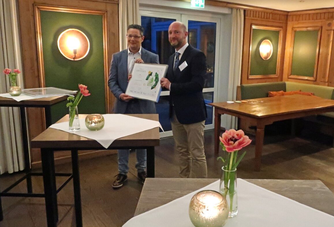 Foto do título: © Loginfo24 / Legenda da imagem: Alexander Klee (à esquerda, chefe da frota) recebe com orgulho o certificado final do Eco Performance Award das mãos do membro do júri e apresentador Stephan Koesling (CEO Office da Toll Collect GmbH).