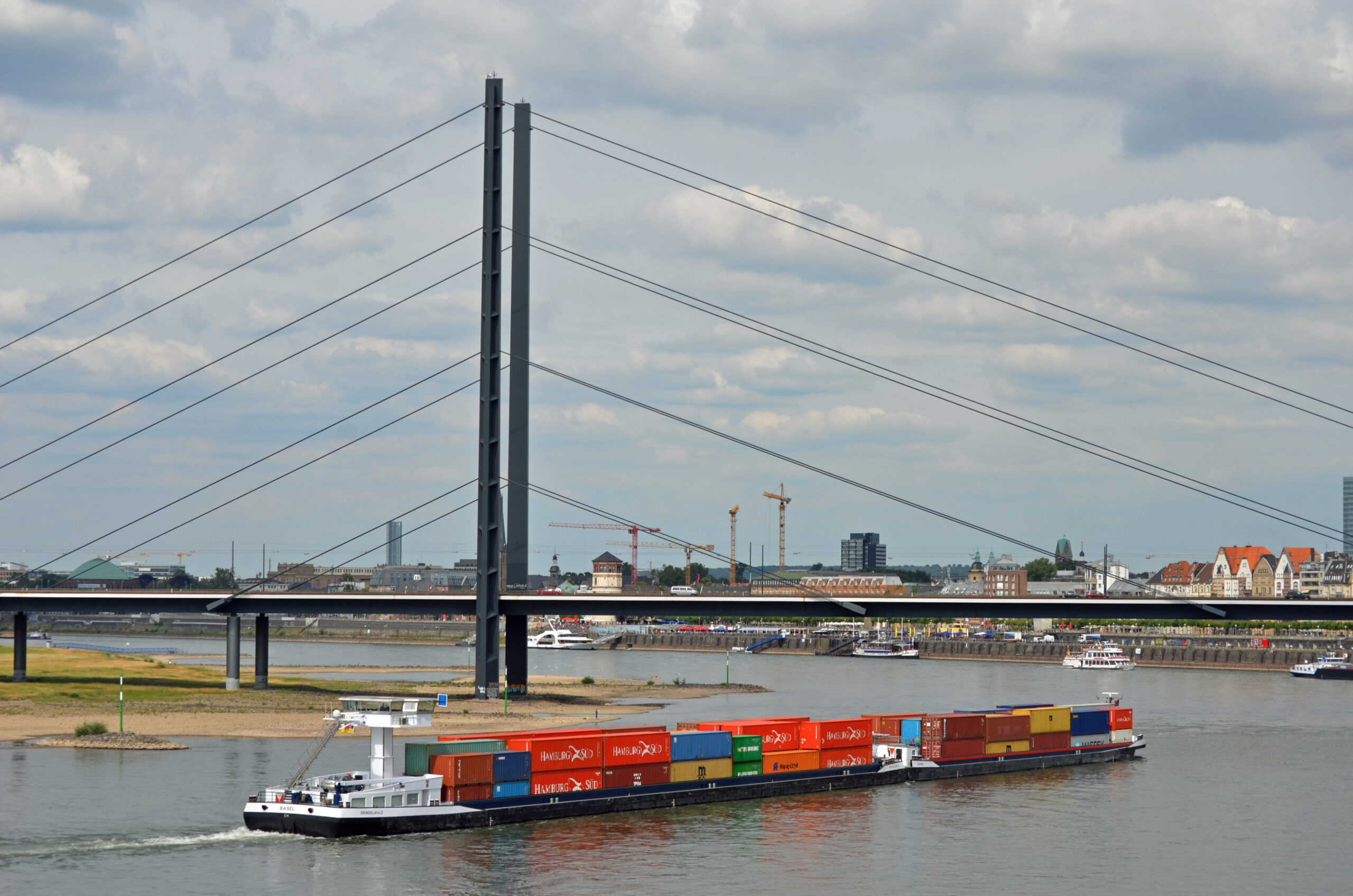 Foto: © Loginfo24 / Legenda da imagem: O MS “Grindelwald” passa por Düsseldorf rio abaixo