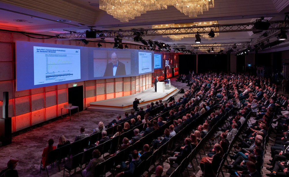 Prof. Dr.-Ing. Thomas Wimmer, BVL, dá as boas-vindas aos participantes do 40º Congresso Alemão de Logística © BVL/Kai Bublitz