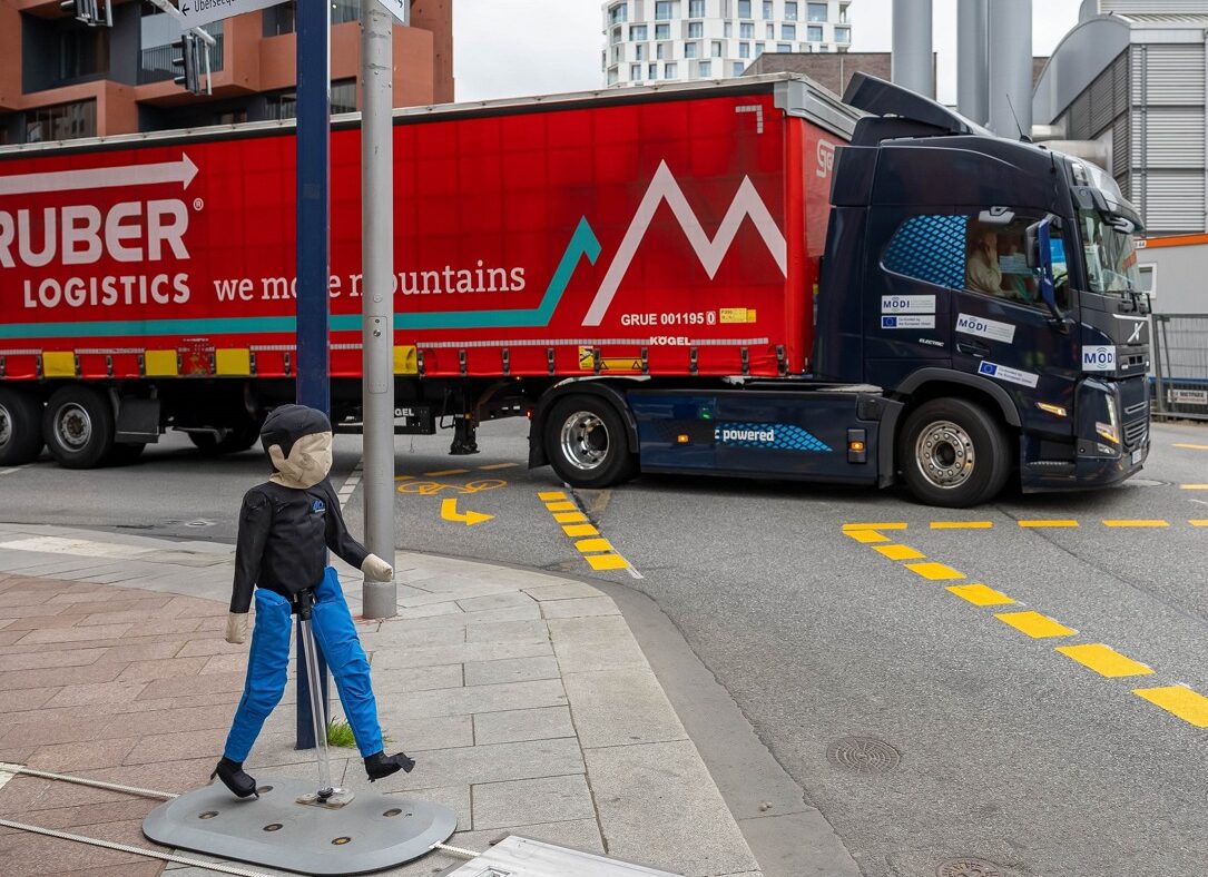 Por outro lado, foi testada a integração na infraestrutura urbana, em chamadas “estradas inteligentes”: em um ponto de tráfego central em Hamburgo, foi utilizado um novo sistema de detecção que captura participantes vulneráveis no tráfego, como pedestres e ciclistas, a até 300 metros de distância. Para isso, padrões de movimento foram analisados e transmitidos em tempo real para os camiões que se aproximavam, que têm um raio de percepção mais limitado. Para simular situações críticas de ponto cego de forma realista, também foram utilizados bonecos de teste de colisão para crianças. Desta forma, pretende-se garantir uma segurança adicional.