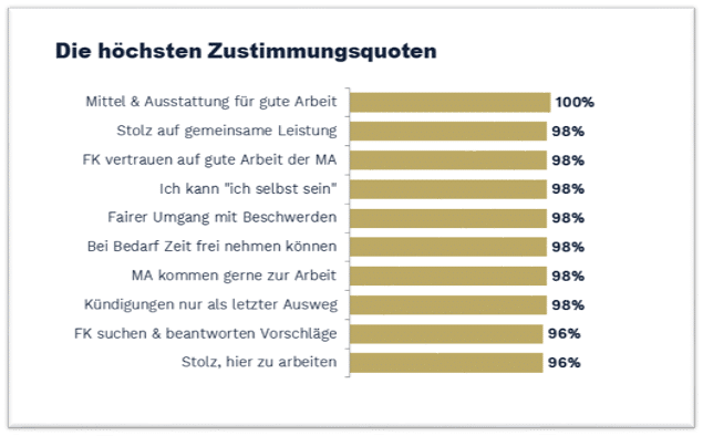 Zufriedenheit der Mitarbeiter bei 98 Prozent