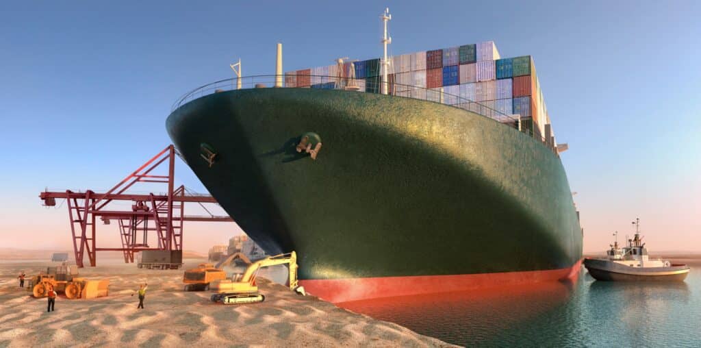 MS EVER GIVEN steckt im Suez-Kanal fest (Foto: Loginfo24/Adobe Stock)